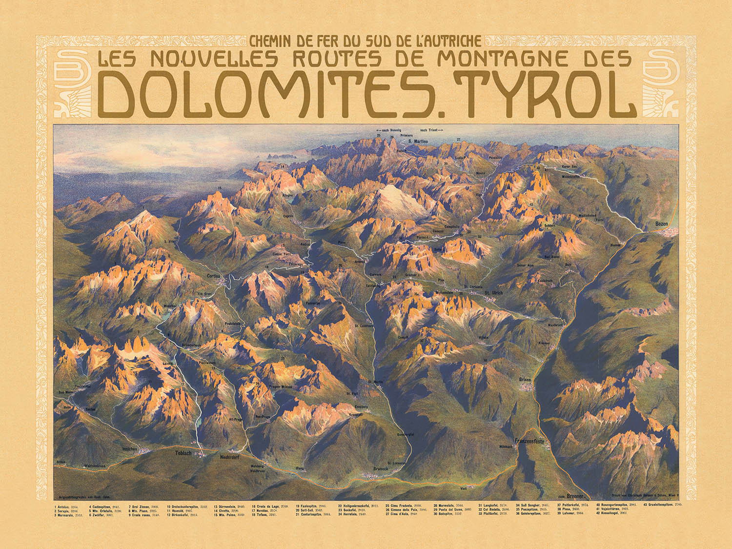 Dolomites Travel Poster: Les Nouvelles Routes de Montagne by Gustav Jahn, 1907