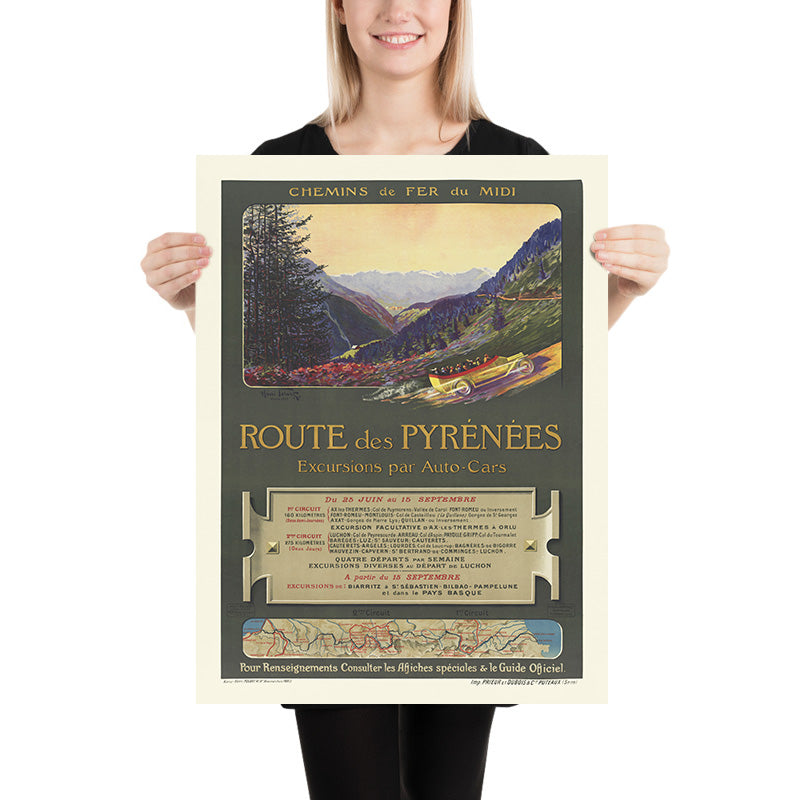 Pyrenees Travel Poster: Route des Pyrénées by Henri Polart, 1913