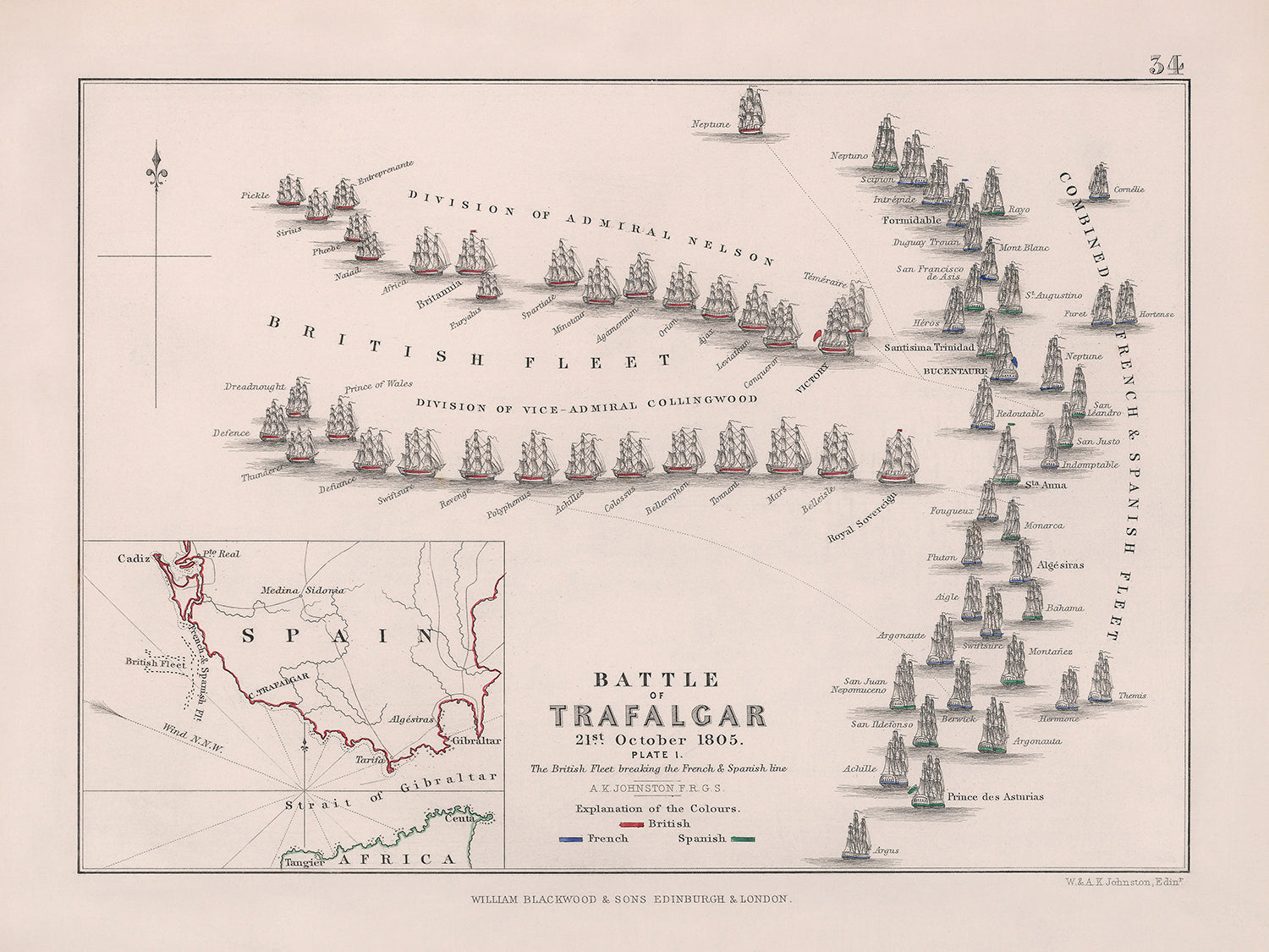 Battle of Trafalgar: The British Fleet breaking the French and Spanish line by AK Johnston, 1852