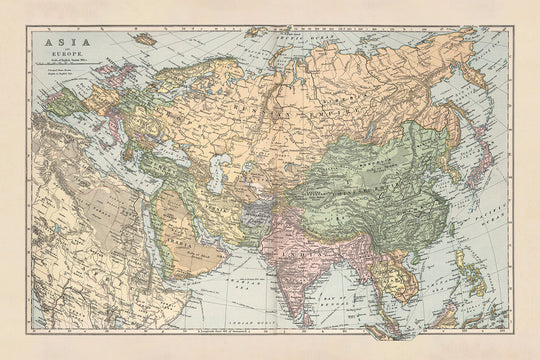 Immerse yourself in the rich tapestry of history with this exquisite 1892 map titled "Asia & Europe," meticulously crafted by the renowned D. Appleton & Co. This map, a testament to the cartographic artistry of the late 19th century, offers a vivid portrayal of the geopolitical landscape of Asia and Europe during a period of profound transformation. D. Appleton & Co., a distinguished American publishing house, was celebrated for its educational and reference works, and this map stands as a sterling example of their commitment to precision and detail.