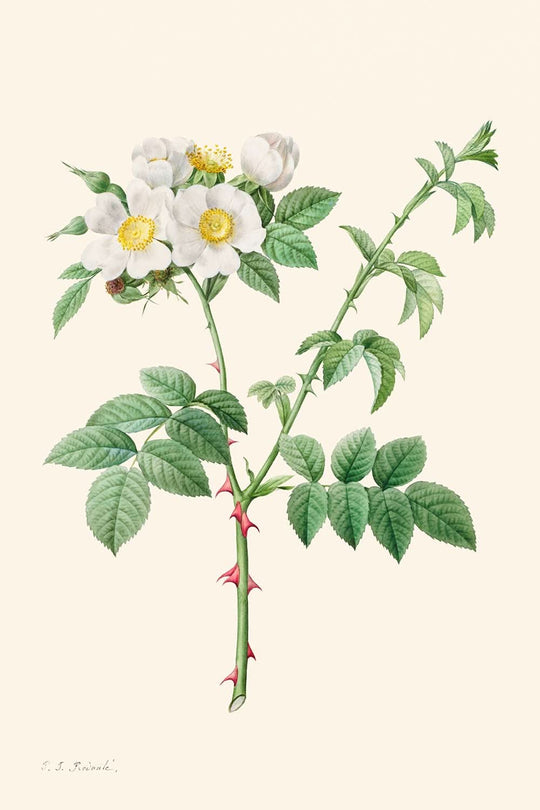 Pierre-Joseph Redouté, ein in Belgien geborener Künstler, erlangte schon früh Anerkennung als Mallehrer von Marie Antoinette. Seine erfolgreiche Karriere nahm Fahrt auf, als er den Auftrag erhielt, die vielfältige Pflanzenwelt von Château de Malmaison zu dokumentieren. Dies führte zu einem umfangreichen Werk mit über 2.100 botanischen Gemälden, die mehr als 1.800 Arten umfassen. Diese Illustration ist Teil von „Les Roses“, einer gefeierten Sammlung, in der die beispiellose Fähigkeit des Künstlers, die zarte Schönheit von Rosen einzufangen, zum Leben erweckt wird.