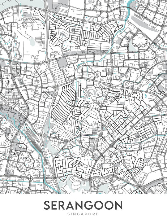 Tauchen Sie ein in die komplexen und faszinierenden modernen Straßen von Serangoon, einem lebhaften Viertel im Herzen von Singapur, durch die Linse der "Serangoon"-Karte von The Unique Maps Co. Dieses zeitgenössische Kunstwerk erweckt die dynamischen und geschäftigen Straßen von Serangoon zum Leben, indem es das Wesen des urbanen Lebens mit seinem detaillierten, beschriftungsfreien Straßendesign einfängt. Die Karte bietet eine einzigartige Perspektive auf das Viertel, hebt seine Straßen, Wahrzeichen und üppigen Grünflächen hervor, ohne die Unordnung traditioneller Kartenbeschriftungen, wodurch sie nicht nur ein Navigationswerkzeug, sondern auch ein auffälliges visuelles Statement ist. Die für diese Karte gewählte Ästhetik betont die Modernität und den einzigartigen Charakter von Serangoon und macht sie zu einem faszinierenden Thema kartografischer Kunst, das sowohl Bewohner als auch Bewunderer der Region anspricht.