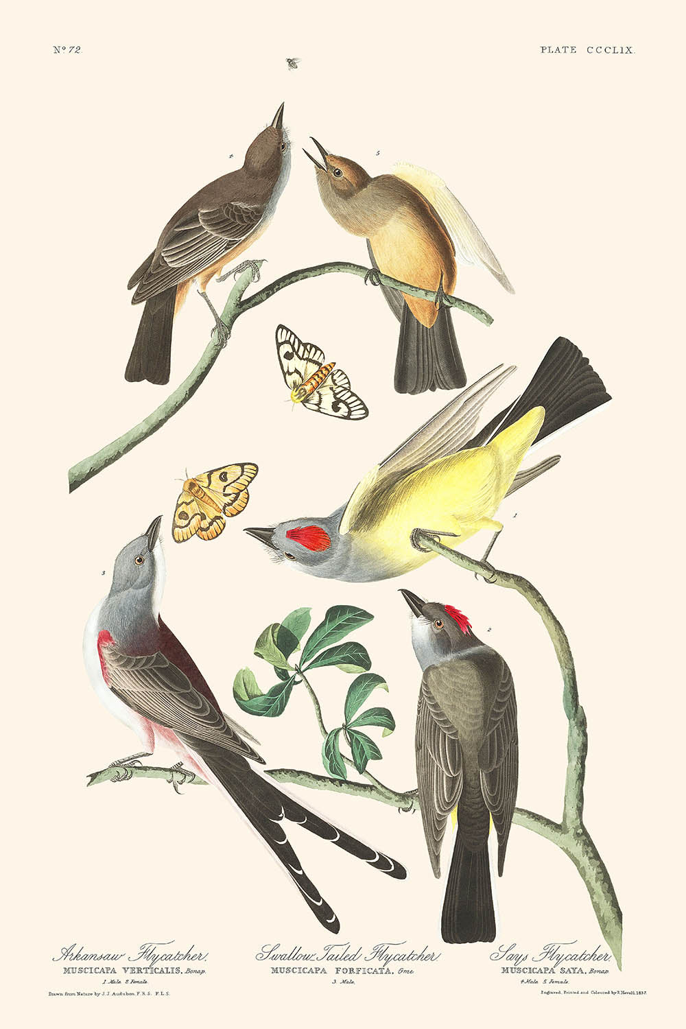 Arkansaw-Fliegenschnäpper, Schwänzefliegenschnapper, Sagt Fliegenschnäpper von Audubon, 1827