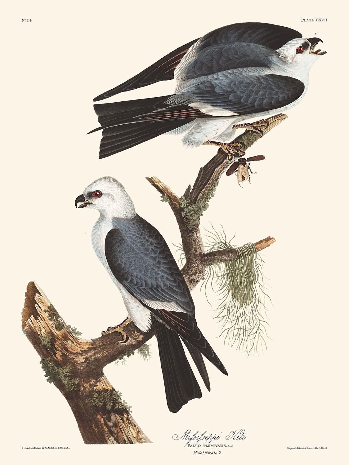 Mit seinen komplizierten Details und historischen Bedeutung ist der Besitz eines Drucks des Mississippi Kite nicht nur der Erwerb von Kunst; es geht darum, ein Stück Naturgeschichte zu besitzen. Die bemerkenswerte Komposition und die Farben dieses Drucks können jede Inneneinrichtung aufwerten und machen ihn zu einem überzeugenden Blickfang in jedem Raum.