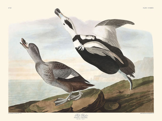Die Abbildung der Elsterente sticht nicht nur wegen ihrer wissenschaftlichen Qualitäten hervor, sondern auch wegen Audubons geschicktem Umgang mit Komposition und Farbe. Das subtile Farbspiel des Federkleids der Ente vor dem ruhigen Hintergrund bereichert diese majestätische Szene noch weiter. Dieser Druck wird jeden Raum aufwerten und ein Gefühl natürlicher Schönheit und historischen Charmes hervorrufen.