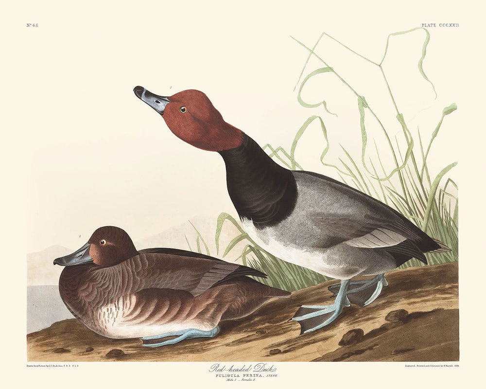 Audubon, ein Name, der mit Ornithologie gleichgesetzt wird, brachte Kunst und Wissenschaft auf beispiellose Weise zusammen. Seine wissenschaftlich genauen und dennoch künstlerischen Darstellungen von Vögeln waren auf diesem Gebiet wegweisend. Die „Rotkopfente“, in New Orleans allgemein „Dos Gris“ genannt, spiegelt eine Schnittstelle zwischen Kunst und Natur wider, wunderschön eingefangen auf eine Weise, die Bände über Audubons Beobachtungsgabe und künstlerisches Geschick spricht.