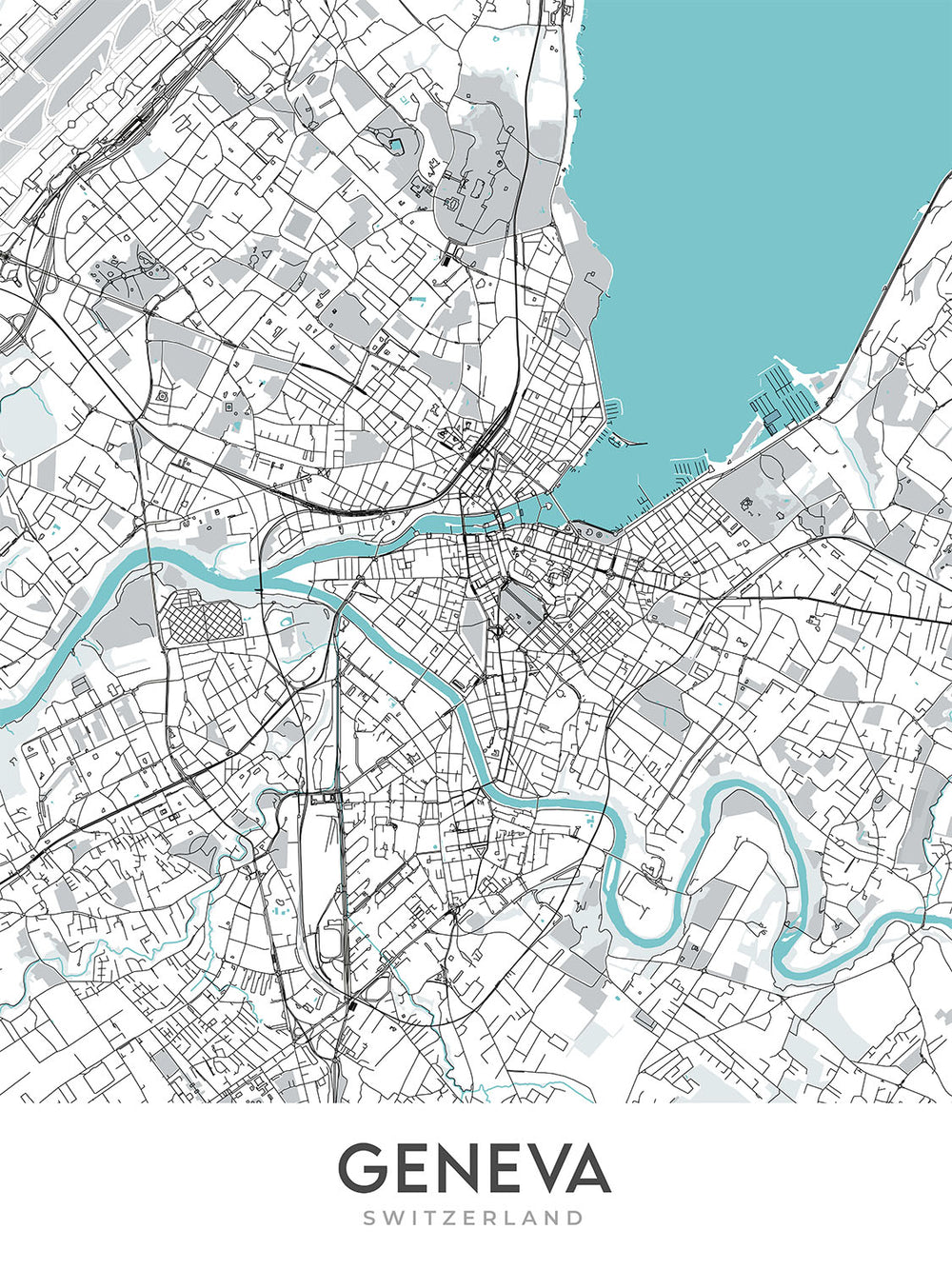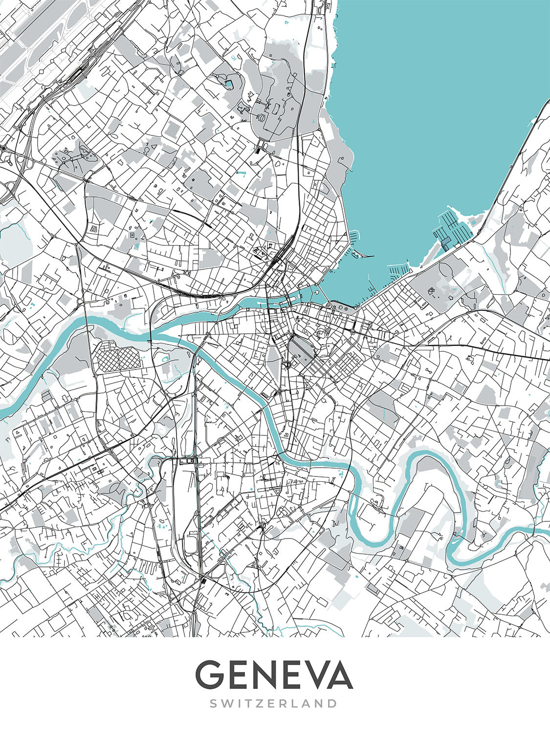 Diese Karte von Genf ist die perfekte Möglichkeit, Ihrem Zuhause oder Büro einen Hauch von modernem Stil zu verleihen. Es ist auch ein tolles Geschenk für alle, die Genf lieben oder sich für Kartografie und Design interessieren.
