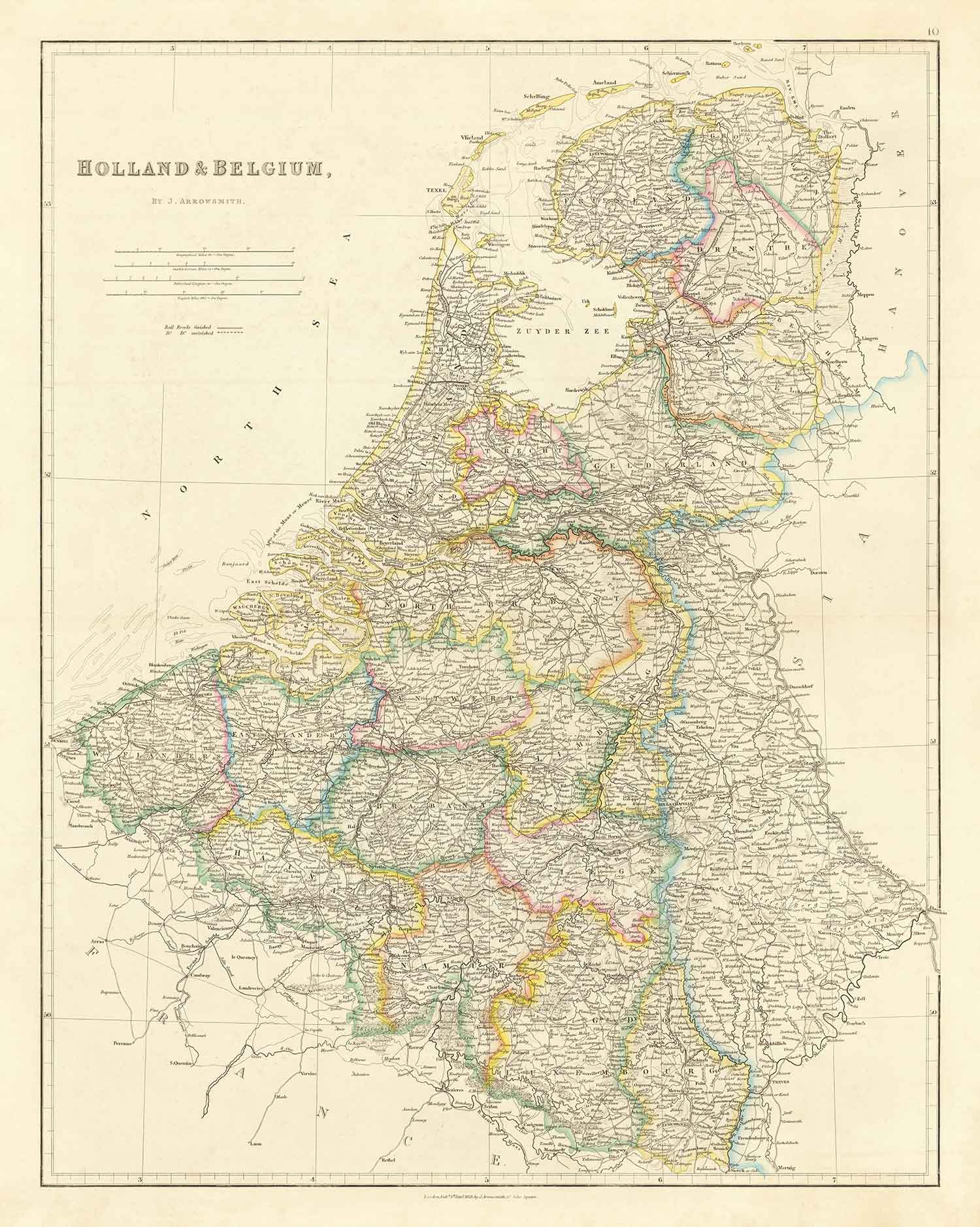 Eine wunderschöne Karte von Belgien und Holland, ursprünglich 1858 veröffentlicht von wahrscheinlich dem gefragtesten Kartenmacher des 19. Jahrhunderts, John Arrowsmith.