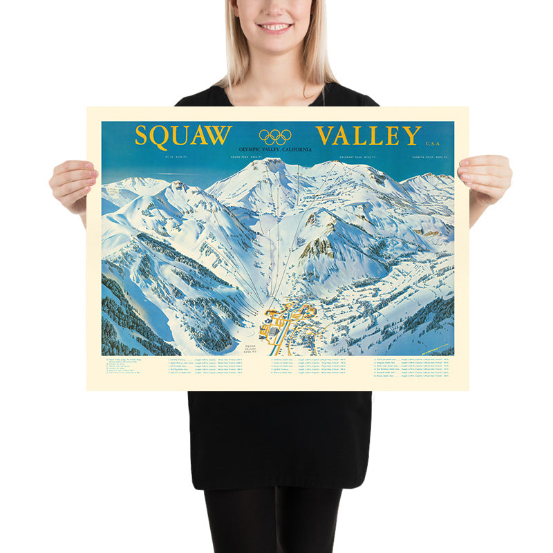Old Pictorial Map of 1960 Winter Olympics, Squaw Valley USA: Aerial Tramway, Olympic Village, Granite Chief