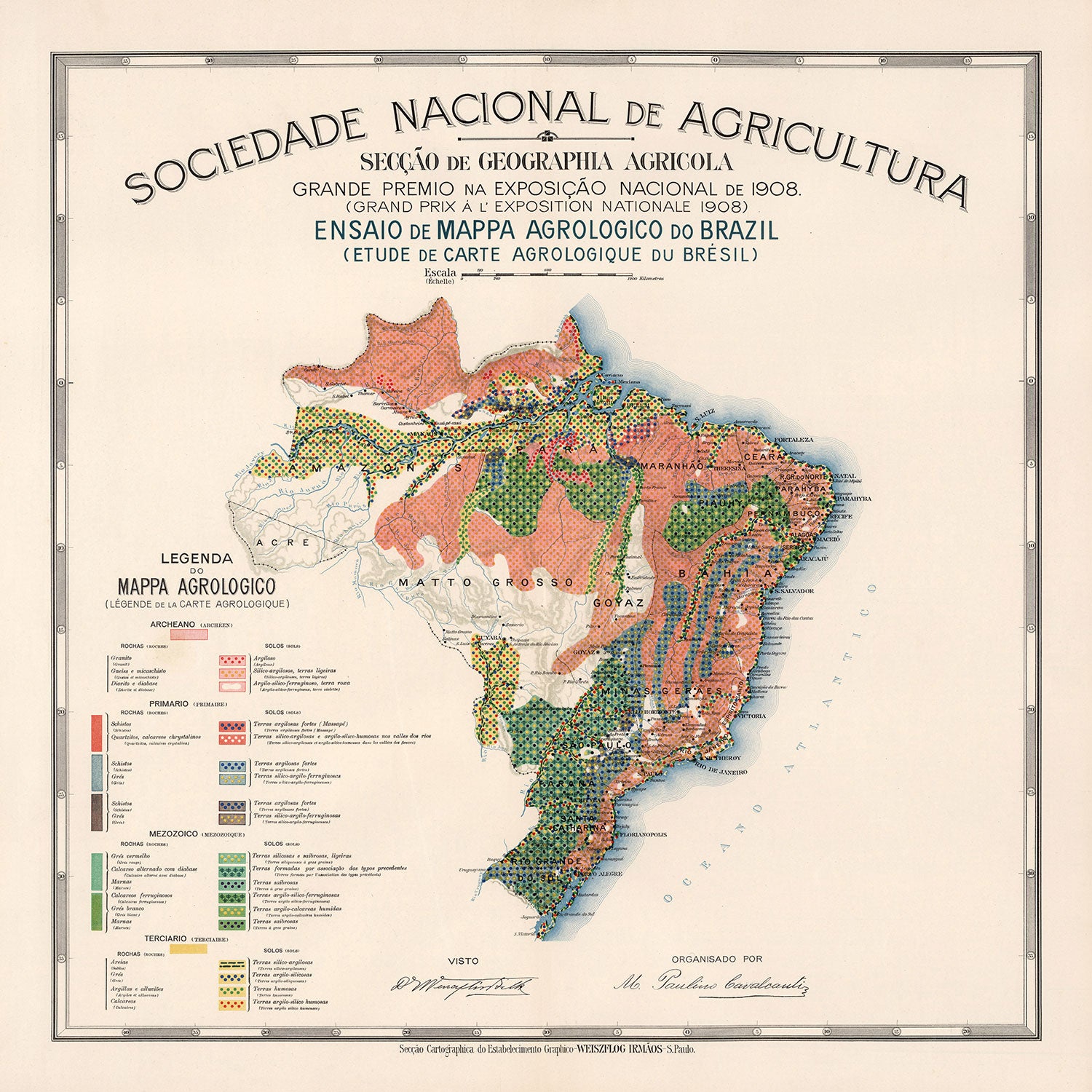 Alte Karte von Brasilien Agrologie, 1908: Landwirtschaft, Geologie, Gesteine, Boden