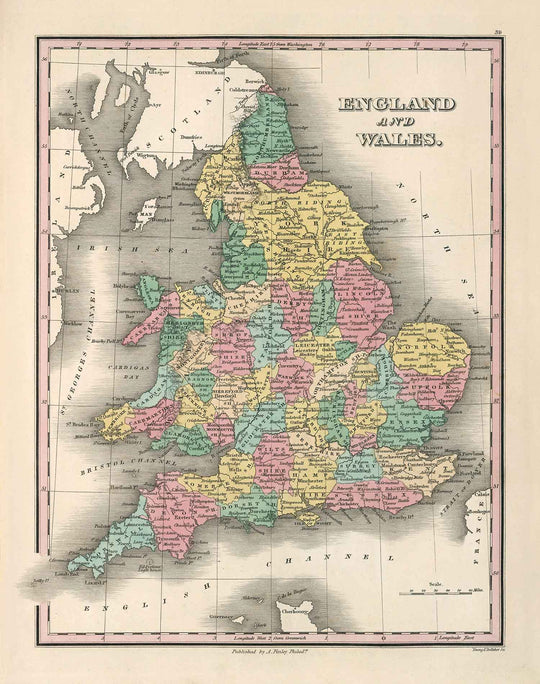 Diese wunderbare alte Karte der Grafschaften in England & Wales wurde ursprünglich 1827 veröffentlicht. Sie wurde von Anthony Finley erstellt.