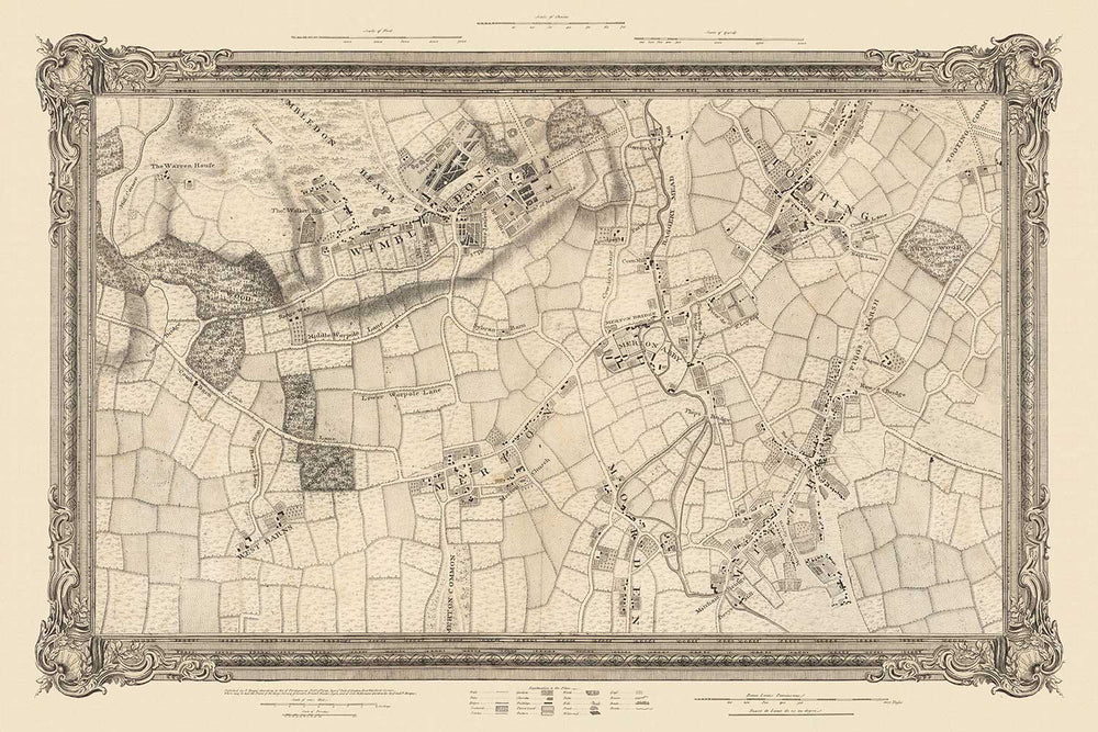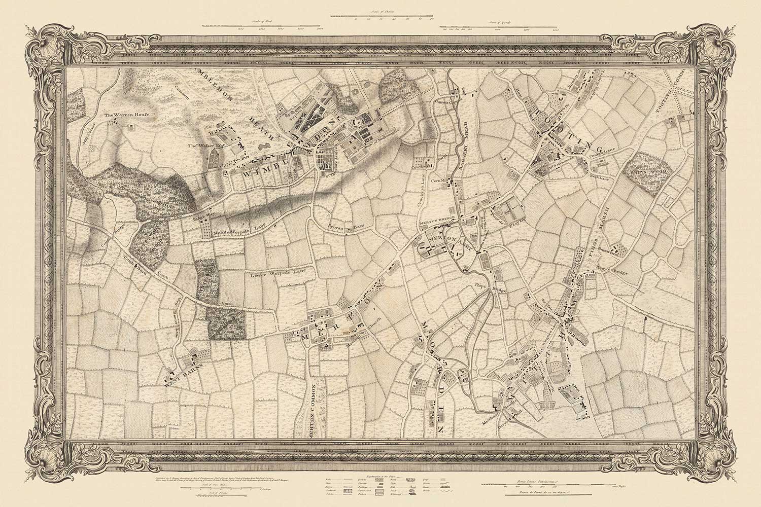 Einige der Orte auf dieser Karte sind: Wimbledon, Tooting, Merton Abbey, Merton, Morden, Mitcham und Wandsworth.