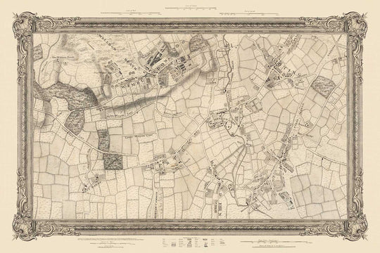Vor fast 300 Jahren von dem Meisterkartenmacher John Rocque veröffentlicht, ist dies die erste detaillierte Karte von Südwest-London und Süd-London. Sie wurde ursprünglich 1746 veröffentlicht, nach einer äußerst genauen Vermessung von London und seinen Vororten, die 1740 begann. Es ist eine wunderschöne, hochdetaillierte und äußerst seltene alte Karte.