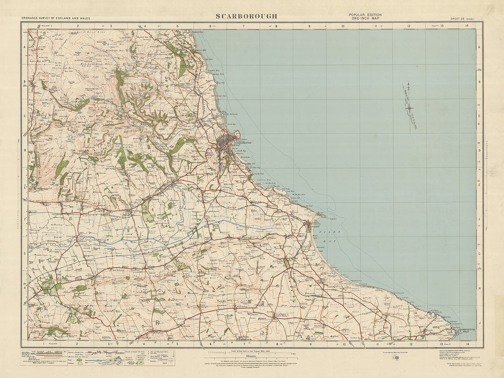 Erforschen Sie die Vergangenheit mit dieser alten Ordnance Survey Karte, Blatt 23 - Scarborough, 1925, und entdecken Sie die Städte und bemerkenswerten Merkmale, die die Geschichte dieser Region geprägt haben.