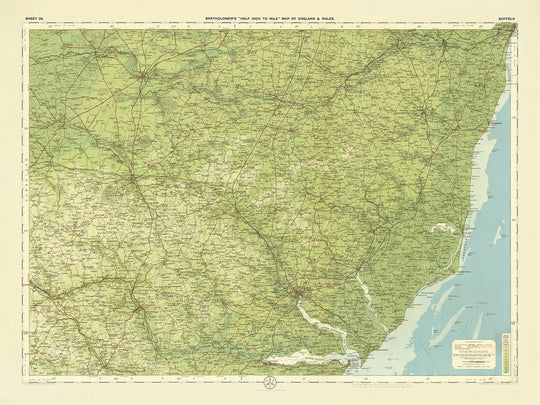- Name der Karte: Blatt 20 - Suffolk, Halbzoll-Bartholomew-Karte der Britischen Inseln