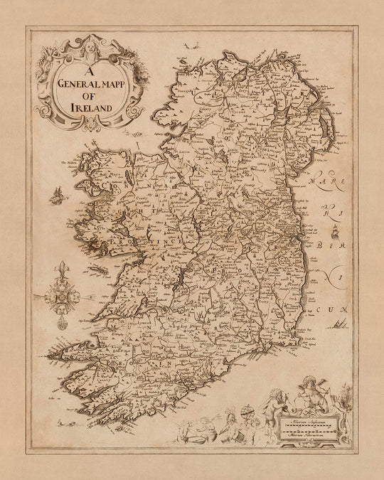 Diese Karte ist ein faszinierender Blick auf Irland im 17. Jahrhundert. Sie ist eine detaillierte und genaue Darstellung des Landes und bietet eine Fülle von Informationen über die Geschichte und Geografie Irlands. Die Karte ist auch ein schönes Kunstwerk und eine wertvolle Ergänzung für jede Sammlung alter Karten.