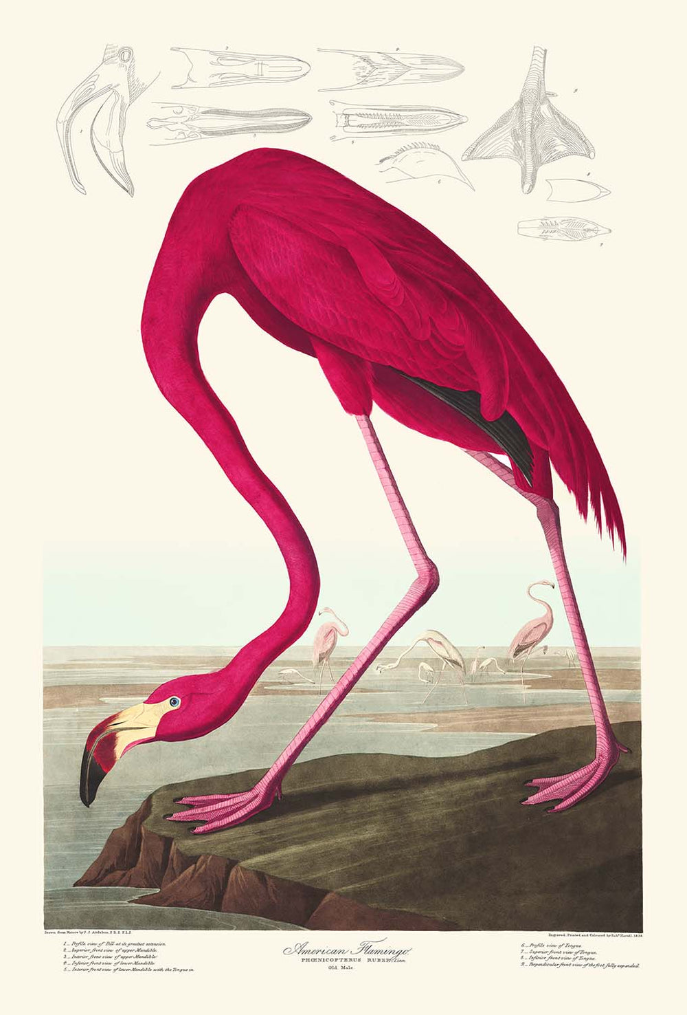 Aufmerksame Naturforscher werden bemerken, dass, während viele von Audobons Vögeln später umbenannt wurden, der Amerikanische Flamingo (pelecanus erythrorhynchos) hier bereits vor fast 200 Jahren korrekt beschriftet ist.