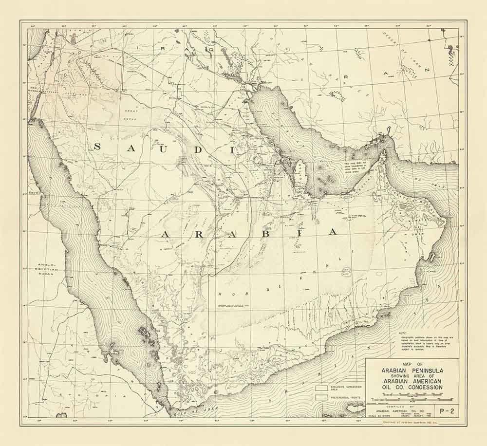 Alte Aramco-Karte, 1953: Erste Karte der Arabischen Amerikanischen Ölgesellschaft