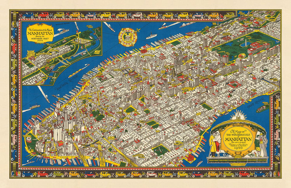 Diese atemberaubende alte Karte von Manhattan, New York, 1926 von Charles Vernon Farrow, zeigt Ihnen, wie die Insel aussah, wie das Empire State Building oder das World Trade Center errichtet wurde. Große Größen sind bis zu 4m (13ft) breit erhältlich. Bitte wenden Sie sich an, wenn Sie eine gerahmte größere Karte suchen.