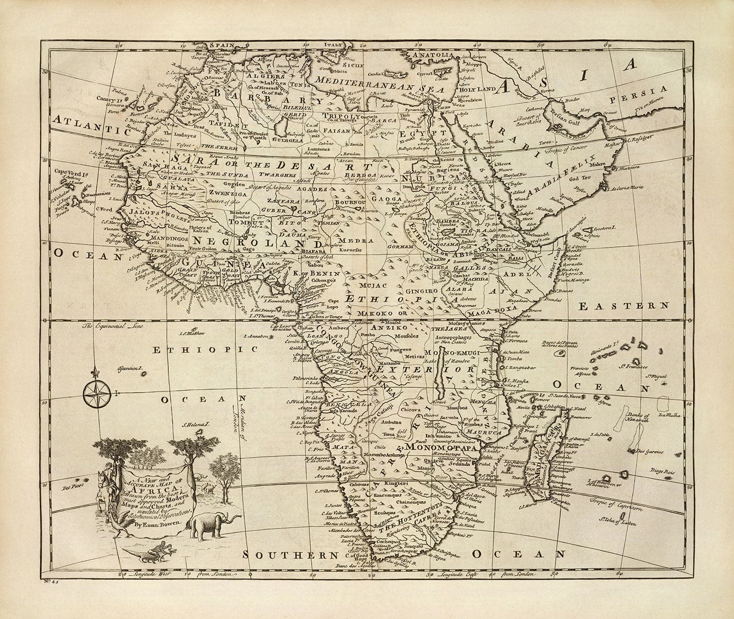 Alte Karte von Afrika, 1747 von Emanuel Bowen: Vor-Kolonial