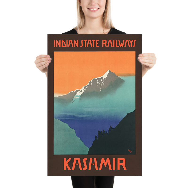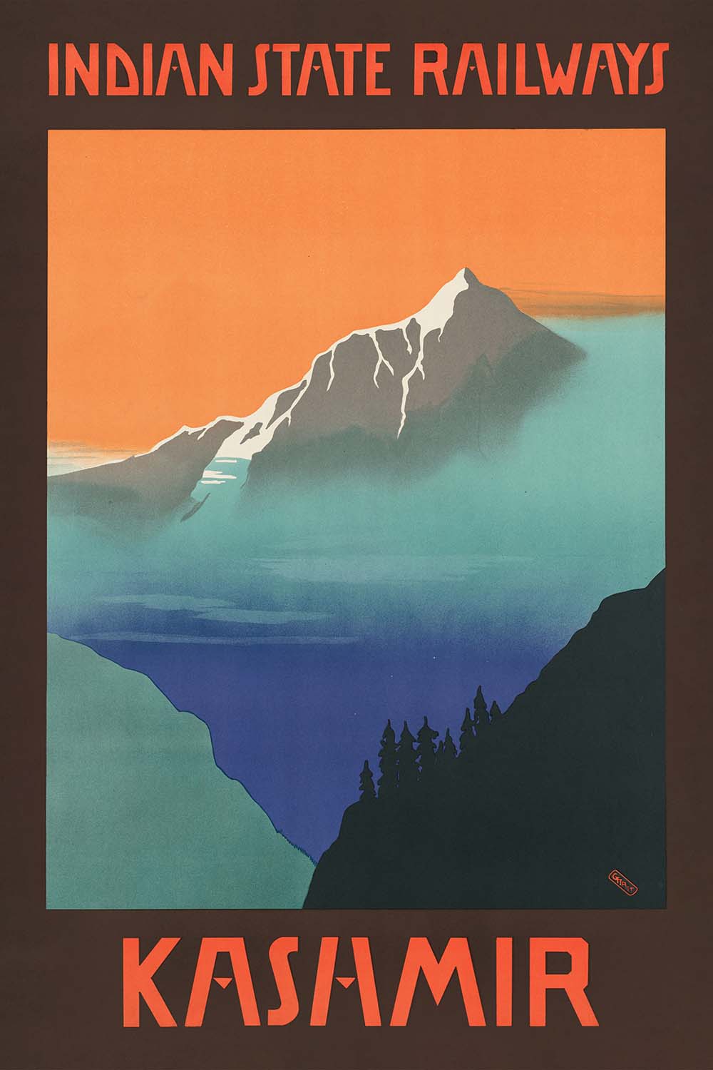 Why this subject matters: Long celebrated for its high valleys, shimmering lakes, and cool summers, Kashmir was promoted throughout the British colonial era as an idyllic mountain escape. Posters like this helped fix the region in the global imagination: a place where snow‑bright peaks tower above cedar‑dark forests and the light shifts from amber to blue as day turns to evening. The image is both an invitation and a memory cue—equally compelling to those yet to go and those who have already fallen in love with the valley’s horizons.