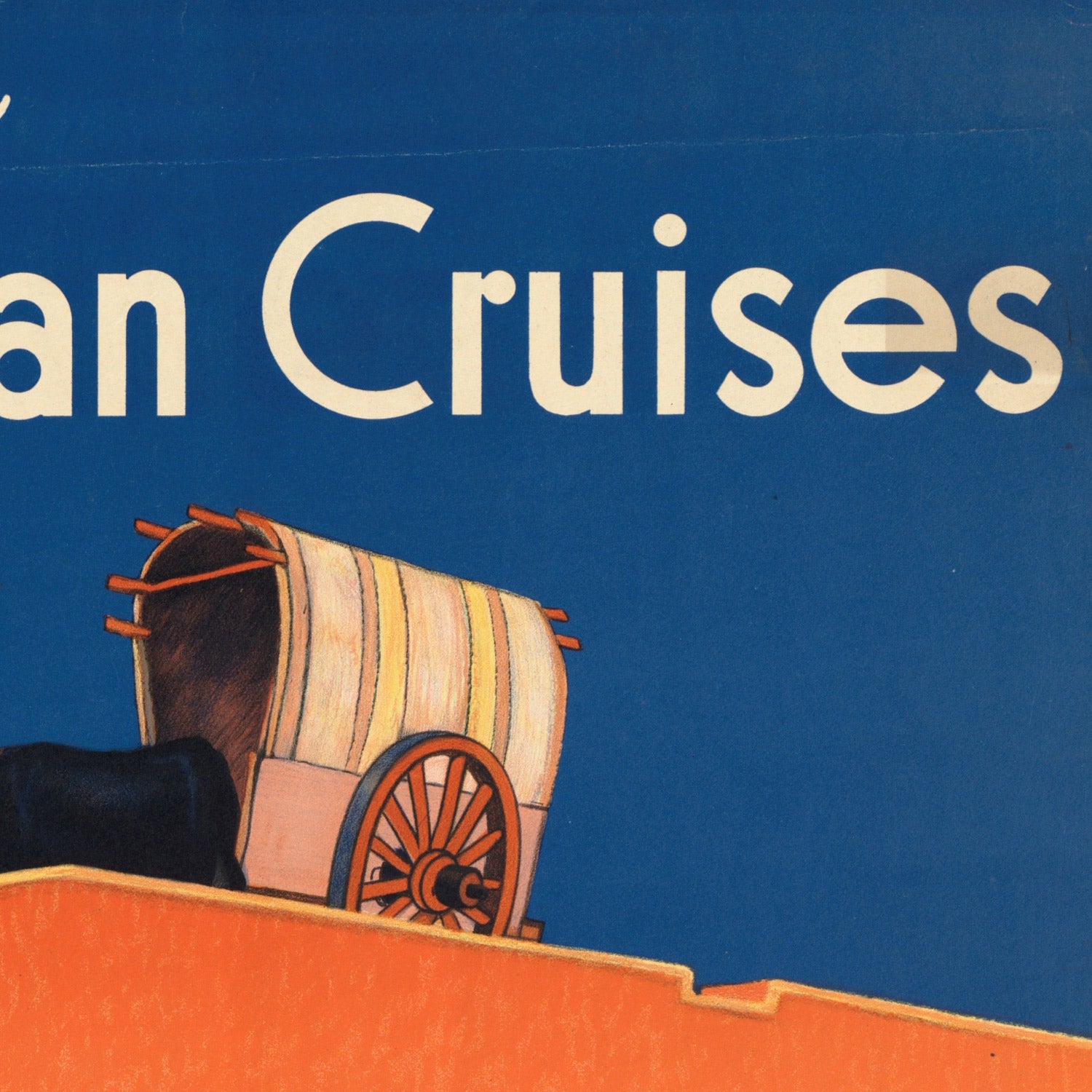 While the individual artist’s name is lost to history, the work bears the unmistakable stamp of early 20th-century travel advertising, likely created for a major cruise line’s in-house or contracted studio. Posters like this were designed to be both aspirational and efficient: crisp geometry to read from a distance, modern typography to signal sophistication, and a composition that places the viewer on the cusp of departure. The result is both graphic design and cultural artifact—a window into the optimism of interwar travel.