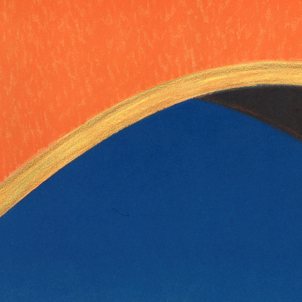 Design enthusiasts will appreciate the poster’s Art Deco clarity. Large planes of flat color, rounded silhouettes, and simplified architectural forms create a poised, harmonious balance. The dominant blue grounds the scene with calm, while accents of orange and yellow add warmth and movement—an elegant palette that complements coastal, mid-century, and contemporary interiors alike. The arch acts like a proscenium, drawing the eye inward and making this print a striking focal point above a sofa, console, or bed.