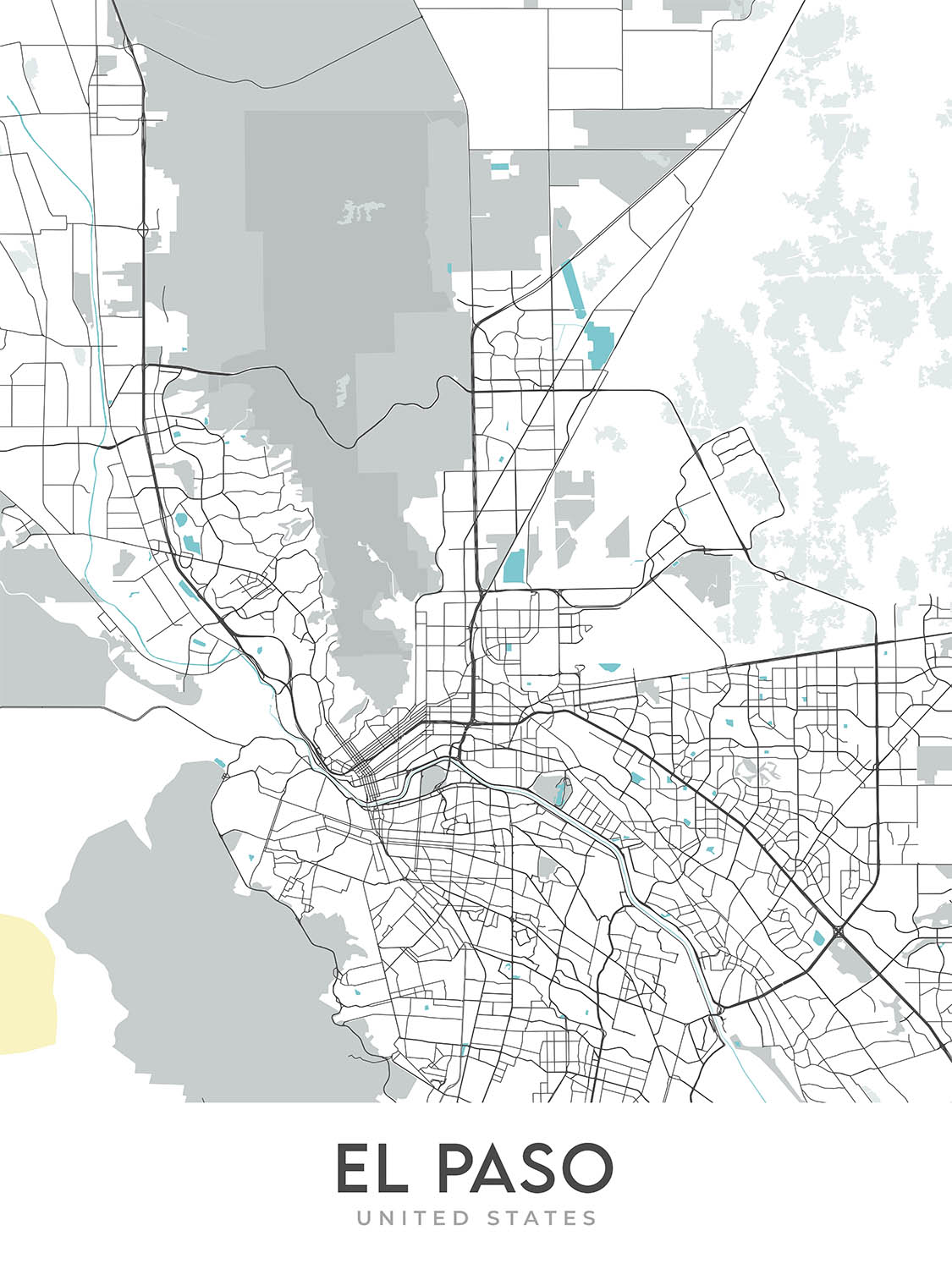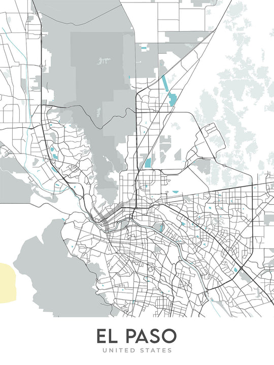 Diese Karte von El Paso ist ein schönes und informatives Kunstwerk, das jedem Zuhause oder Büro einen Hauch von Eleganz verleiht. Egal, ob Sie ein Einheimischer oder nur ein Besucher sind, diese Karte wird sicher Ihre Vorstellungskraft fangen und Sie dazu bringen, mehr von dieser lebhaften Stadt erkunden zu wollen.
