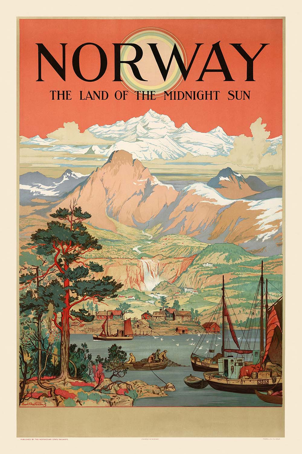 Norway Travel Poster: Land of the Midnight Sun by Arent Lauritz Christensen