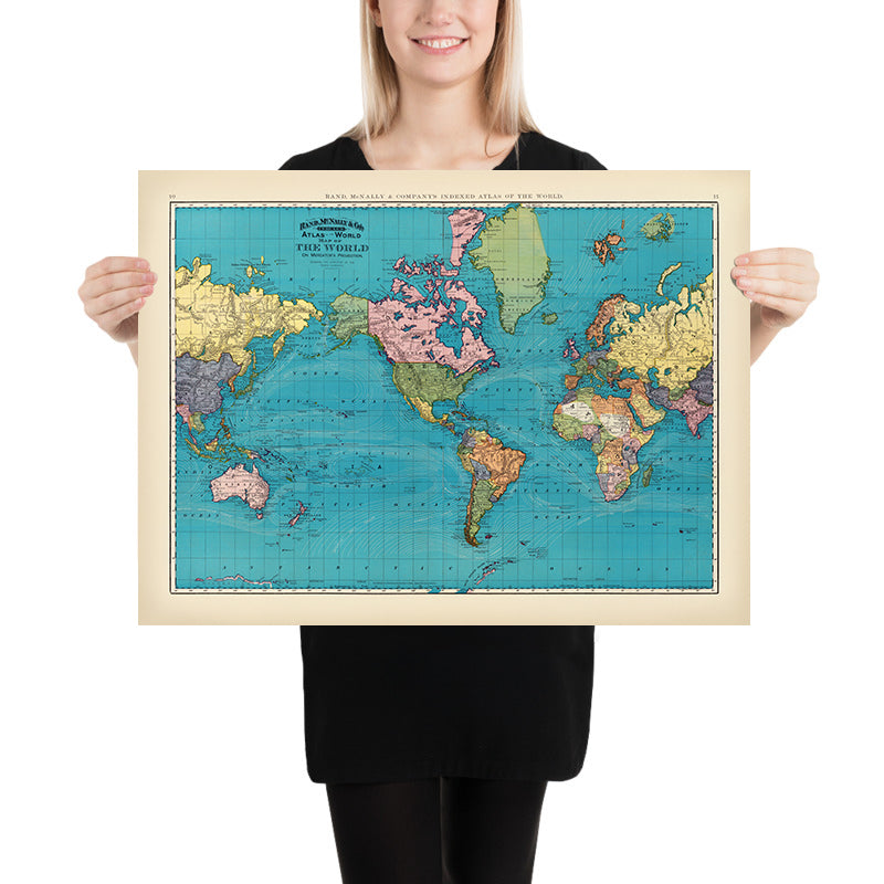 Issued at the pinnacle of Rand McNally’s atlas production, this sheet harmonizes with the firm’s 1896 style and the 1897 Standard Atlas of the World, participating in a coordinated visual language across series. The Indexed Atlas—divided into volumes on foreign countries and the United States—codified a world newly synchronized by rail timetables, telegraph cables, and standardized hours. This world map makes those systems legible: time zones become geography; oceans become routes; political color becomes a ledger of power. Underlying it all are the period’s advances in cartographic compilation and print workflow, which enabled unprecedented clarity, consistency, and reach.