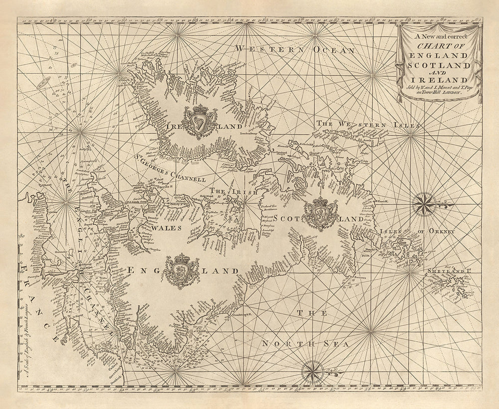 Diese wunderbare alte Karte eines Seekarten von den Britischen Inseln wurde ursprünglich 1752 veröffentlicht. Sie wurde von Page & Mount erstellt.
