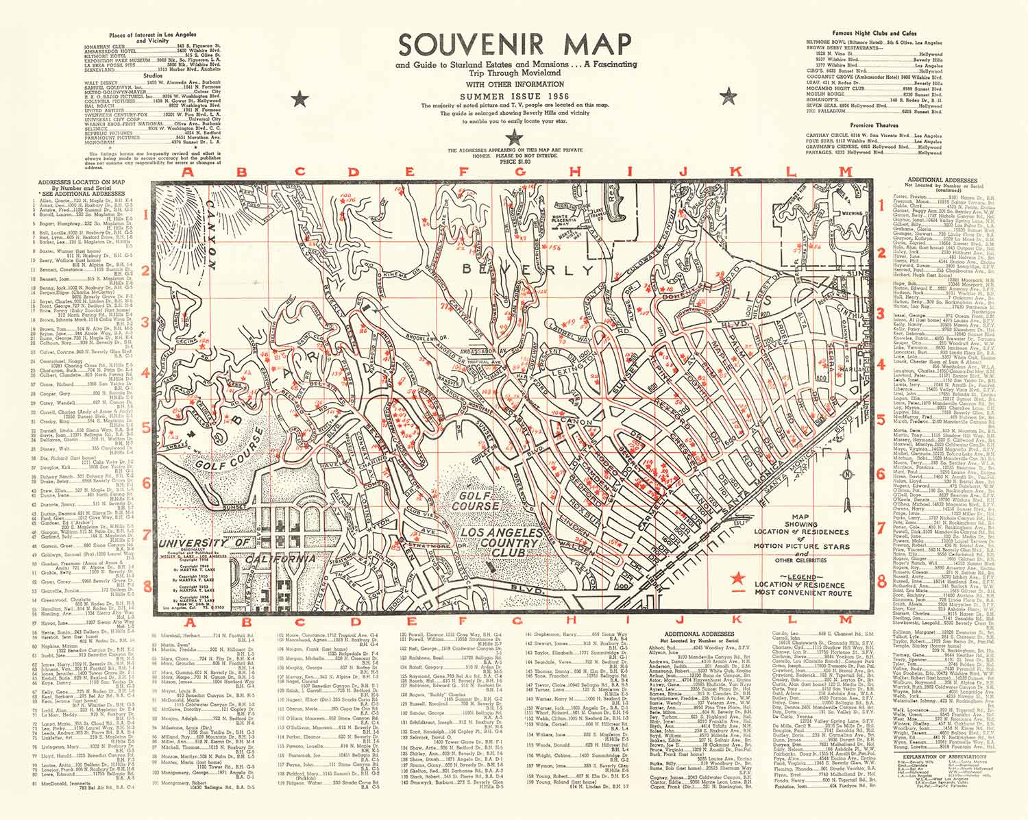 Eine ziemlich interessante Karte von Beverly Hills, Santa Monica und Bel-Air, die Sie direkt zur Türschwelle fast jedes berühmten Hollywood-Stars der 1950er Jahre führt - daher der Name der Karte, "Starland".
