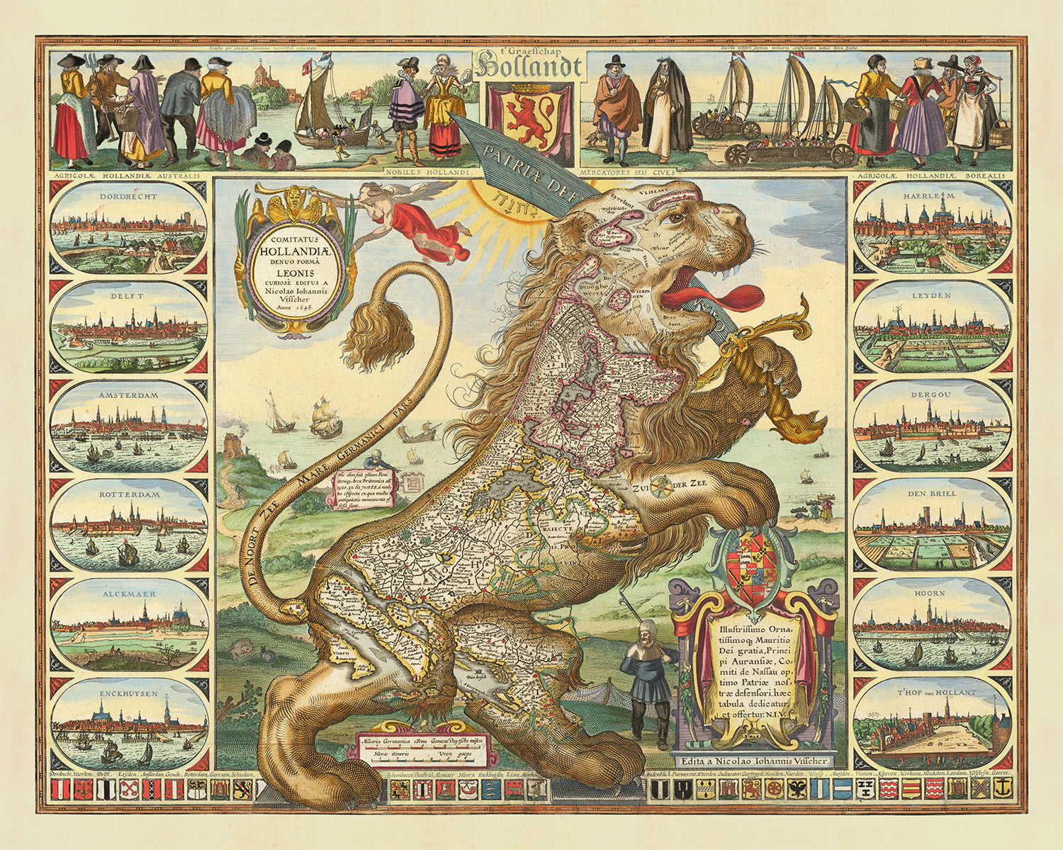 Die Karte wurde am Ende des Achtzigjährigen Krieges erstellt, der zwischen dem Spanischen Reich und der Niederländischen Republik ausgetragen wurde. Der Krieg endete mit der Unabhängigkeit der Niederländer. Die Karte ist eine Hommage an den niederländischen Nationalismus und Stolz.