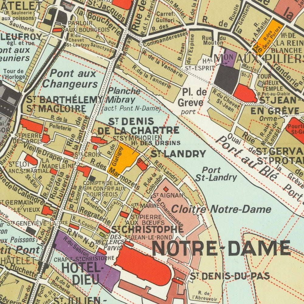 • Areas identified for religious institutions like the Sorbonne and multiple churches