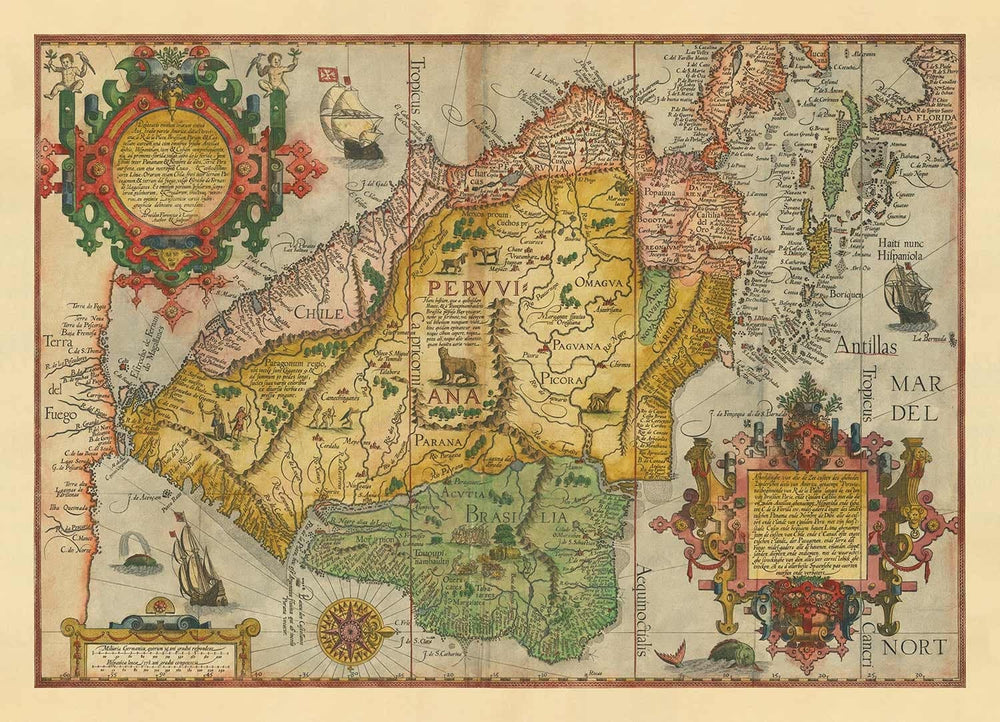 Eine der ältesten und schönsten Karten Südamerikas wurde 1996 von Dutch Grandmaster Jan Huygen van Linschoten veröffentlicht.