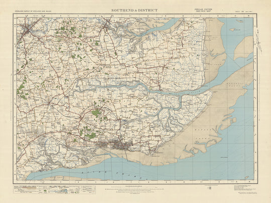 Diese sorgfältig erstellte Karte bietet einen faszinierenden Einblick in die Vergangenheit und ermöglicht es Ihnen, die Region Southend & District so zu erkunden, wie sie im Jahr 1925 existierte. Sie bietet eine einzigartige Perspektive auf die Landschaft, die Siedlungen und den historischen Kontext der Region. Es ist wichtig zu beachten, dass einige moderne Städte zwar möglicherweise nicht auf dieser Karte vorhanden sind, sie jedoch frühere Namen bestimmter Orte enthüllt und so eine spannende Ebene historischer Bedeutung hinzufügt.