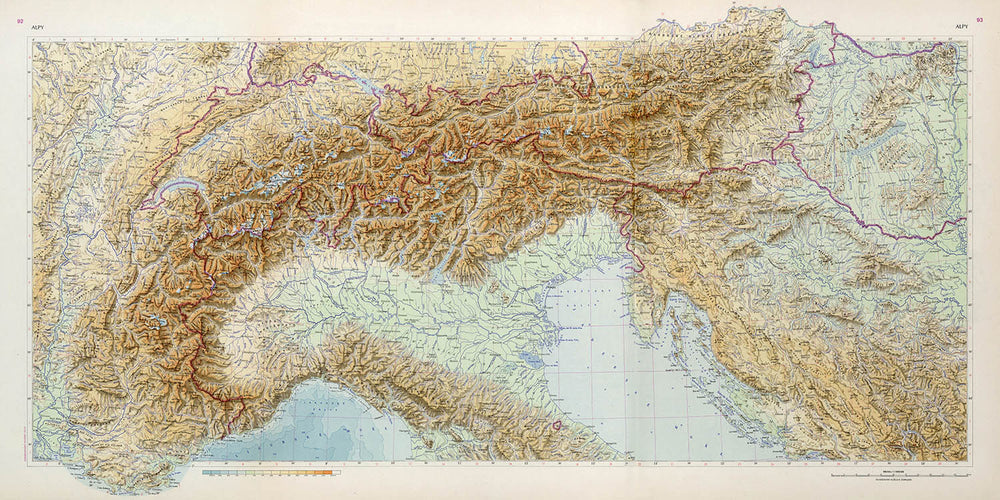 Scholarly ambition underpins the work. Compiled by a consortium of cartographers and historians, the atlas program culminated in two volumes (1965–1966) and a separate 256‑page register indexing roughly 210,000 place‑names—an extraordinary apparatus that respects Alpine toponymy across German, French, and Italian traditions. In Alpy, that erudition becomes a navigable surface: a mesh of peaks, cols, waters, and polities that rewards close reading. For the connoisseur, it is a study in Cold War cartographic style—disciplined, data‑rich, and ideologically lucid—yet it remains deeply humane in its attention to settlement, route, and landscape form. Whether one seeks Zurich’s rail radii, Milan’s Lombard gateways, Innsbruck’s valley geometry, or Grenoble’s mountain hem, this map meets the eye with precision and the mind with inexhaustible depth.
