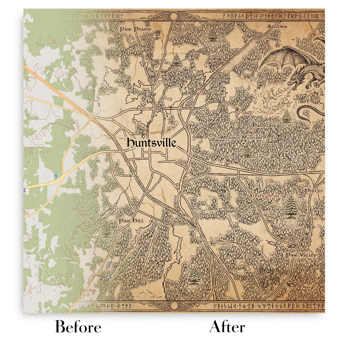 For the first time ever, you can turn any real place on Earth into a stunning, high-fantasy style map — inspired by classic adventure cartography (yes… that kind of map), but built around the landscape that matters to you.