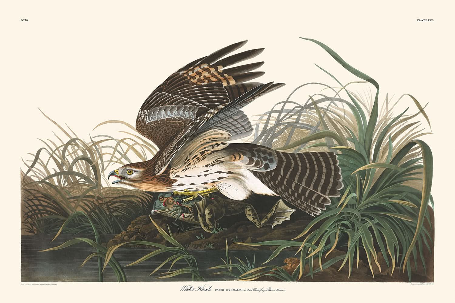 Winter Hawk, erstmals 1827 veröffentlicht, ist eine fesselnde Illustration aus John James Audubons berühmter Sammlung Birds of America. Dieses Werk fängt die majestätische Präsenz des Winterhawk in atemberaubenden Details ein.