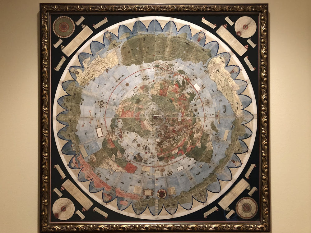Este es el mapa mundial de la Tierra plana original y más grande, creado originalmente por el cartógrafo italiano Monte Urbano en 1587 en Milán.