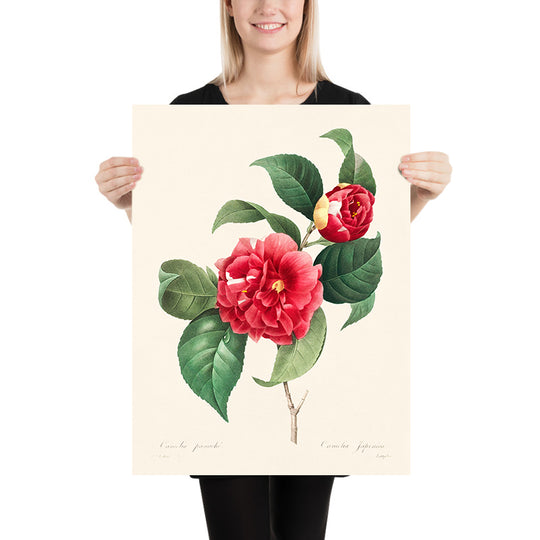 Redouté, nacido en Bélgica, se ganó el reconocimiento como profesor de pintura de María Antonieta antes de sumergirse en la extensa y prolífica documentación de especies vegetales. A lo largo de su carrera, publicó más de 2100 ilustraciones botánicas, lo que consolidó su lugar como figura icónica en el campo del arte botánico. Su ilustración de la Camelia japonica es particularmente especial, ya que muestra los elegantes detalles y los colores vibrantes que son característicos de su estilo.