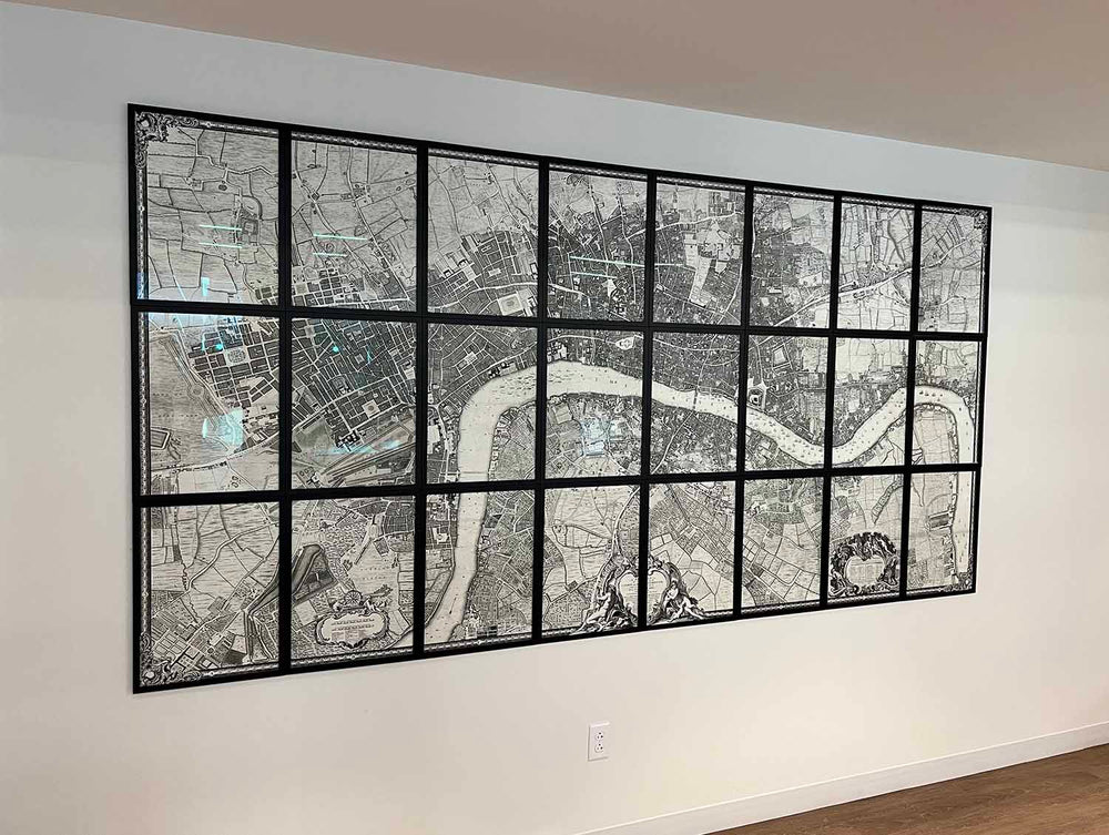 Obtengo mapas originales y raros de bibliotecas, casas de subastas y colecciones privadas de todo el mundo, los restauro en mi taller de Londres y luego uso tintas e impresoras giclée especializadas para crear hermosos mapas que lucen incluso mejor que el original.