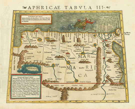 Esta maravillosa antigua mapa de África del Norte fue publicada originalmente en 1545. Fue creada por Sebastián Munster.