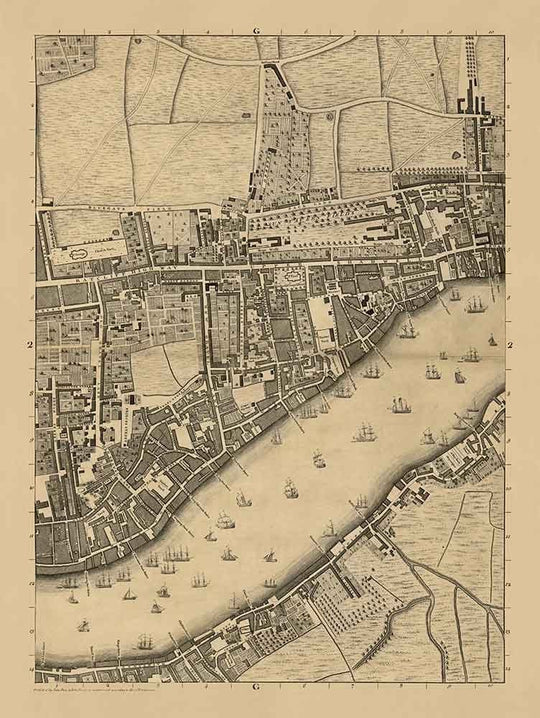 Este mapa fue publicado originalmente en 24 hojas. El mapa que se muestra aquí es la hoja G2, que se centra en la parte del Támesis que tiene Wapping y Shadwell en el lado norte y un pequeño trozo de Rotherhithe en el lado sur. Cubre partes de Tower Hamlets y Southwark, y un gran trozo del Támesis.