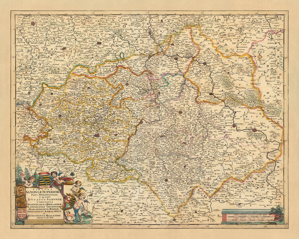 Nicolaes Visscher II, el creador del mapa, formaba parte de la reconocida familia de cartógrafos, artistas y editores Visscher. Su abuelo, Claes Janszoon Visscher, fue una figura importante durante la Edad de Oro holandesa de la cartografía. Este mapa es un testimonio de la contribución de la familia Visscher a la cartografía, proporcionando una representación detallada y precisa de la Alta Sajonia a finales del siglo XVII. Es una pieza de historia, que ofrece una ventana al pasado y una valiosa adición a cualquier colección.