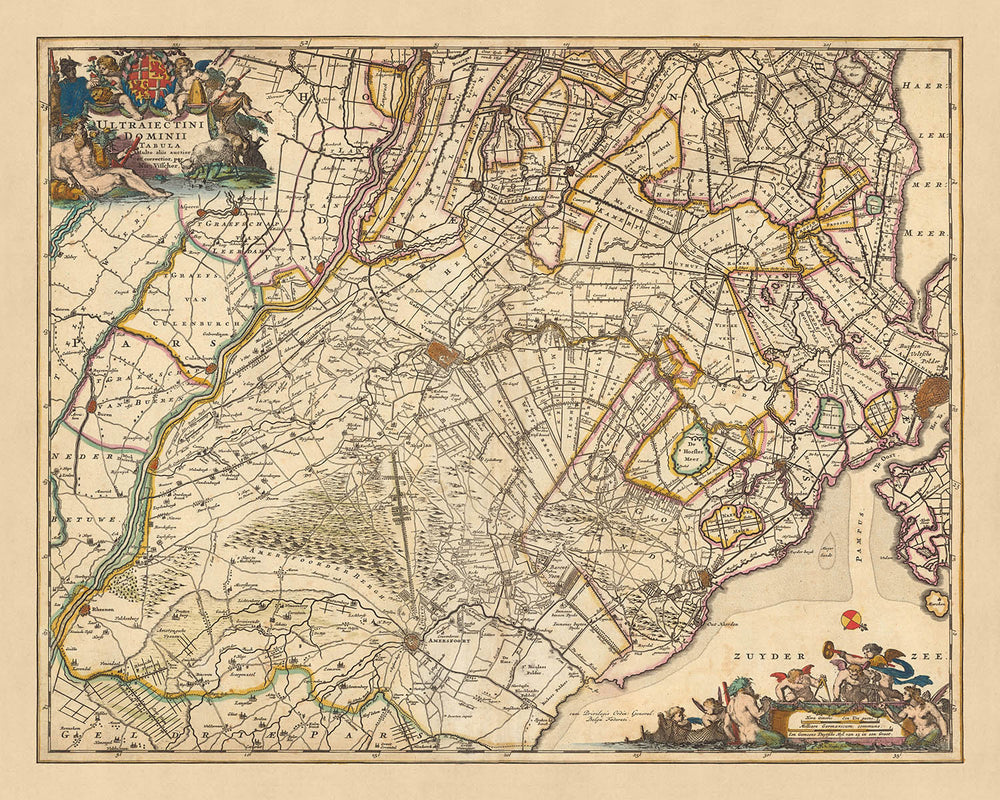 El mapa de Visscher ofrece una visión fascinante del panorama histórico y político de la época. Detalla las diversas regiones y divisiones políticas dentro del dominio de Utrecht, ofreciendo una visión de la compleja dinámica de la época. Esto lo convierte no sólo en una pieza decorativa, sino también en un valioso documento histórico que puede ofrecer una comprensión más profunda del pasado.