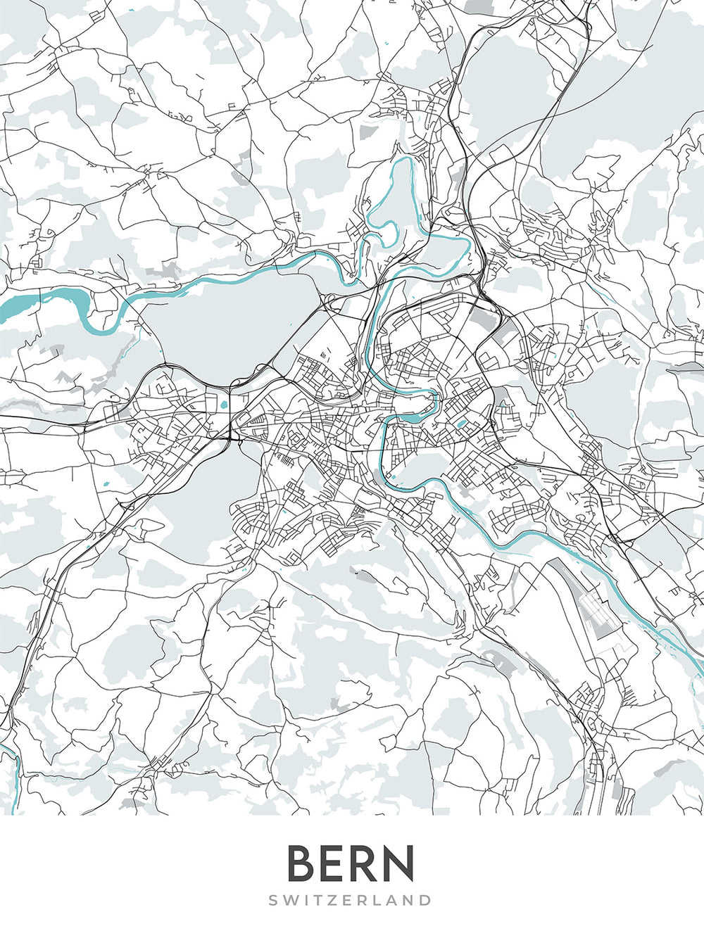 Esta creación original de The Unique Maps Co. presenta una cartografía única, un diseño moderno y una llamativa paleta de colores que complementará la decoración de cualquier hogar u oficina. El mapa no es sólo una herramienta funcional para la navegación, sino también una hermosa obra de arte que captura la esencia del encanto urbano de Berna.