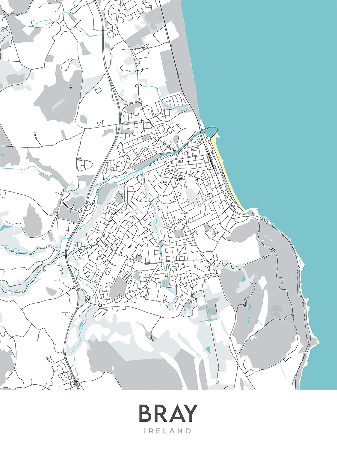 Mapa moderno de la ciudad de Bray, Irlanda: Bray Head, Bray Harbour, Reserva Natural de Bray Head, N11, R117