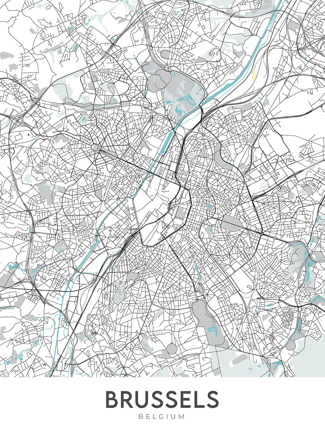 Esta creación original de The Unique Maps Co. presenta una cartografía única, un diseño moderno y una llamativa paleta de colores. El mapa es una hermosa obra de arte que complementará la decoración de cualquier hogar u oficina. La estética moderna y el diseño detallado de las calles del mapa lo convierten en un excelente tema para iniciar una conversación y un regalo perfecto para cualquiera que ame Bruselas o la cartografía moderna.