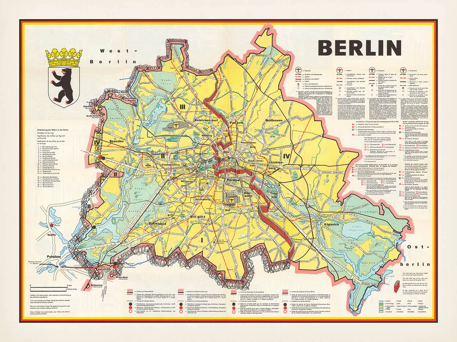 Antigua Mapa de Berlín, 1963: Construcción del Muro de Berlín, Guerra Fría, Puerta de Brandeburgo